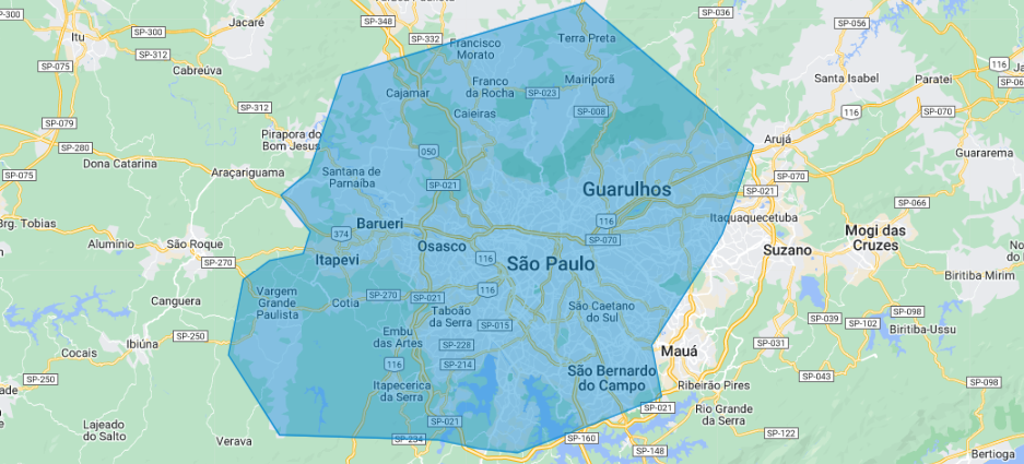 São Paulo, Osasco, Barueri, Santana de Parnaíba, Itapevi, Jandira, Carapicuíba, Embu das Artes, Taboão da Serra, Guarulhos,